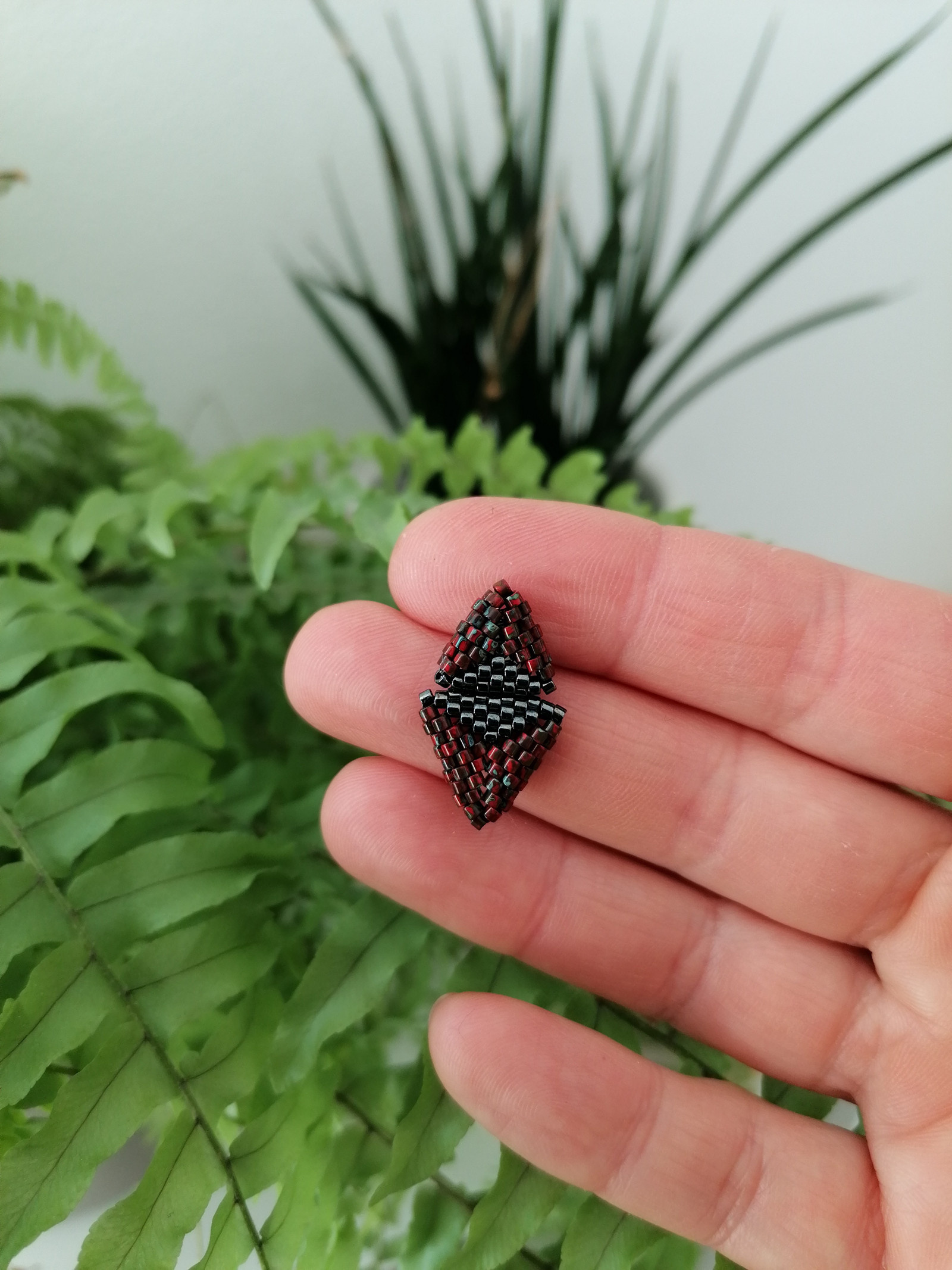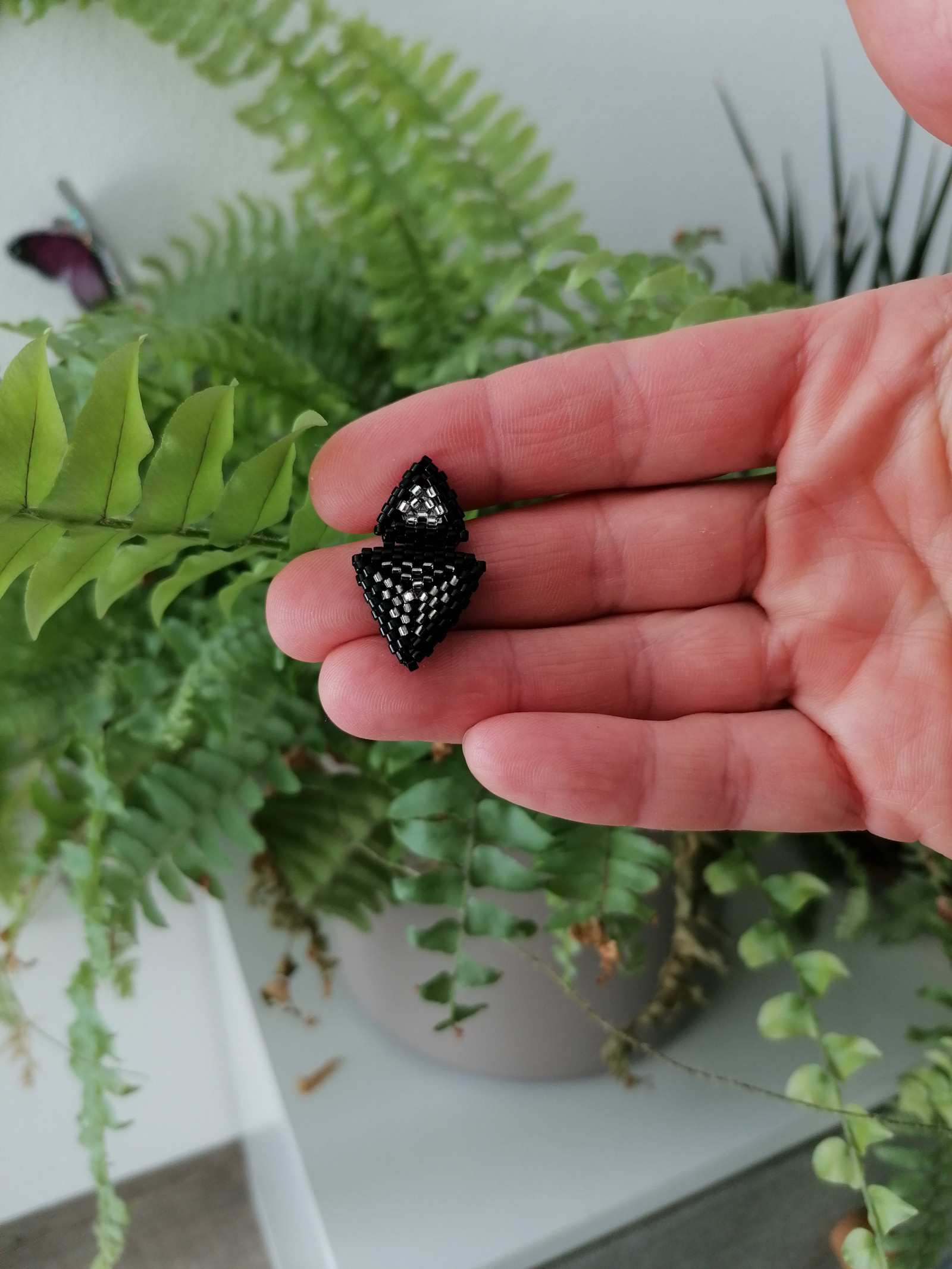 Začátkem října jsem pořádala takový malý kurz na šití trojúhelníků. A abych měla na kruzu vzorky pro lepší představu účastnic, našila jsem větší i menší trojúhelníky. Ona tahle 3D varianta vypadá nejlépe spíš v té menší velikosti. Taky se na ně dají dobře zužitkovat zbytky korálků. A i na malém objektu se dá pěkně vyhrát s barvami: